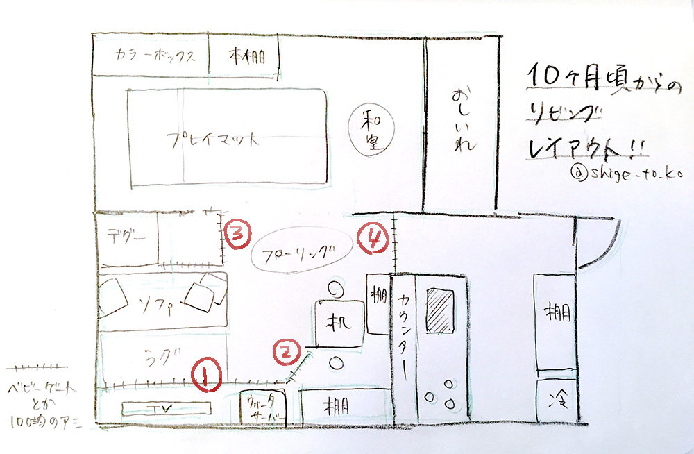 「ハイハイ期~つかまり立ち期にかけての我が家のリビングのレイアウト」