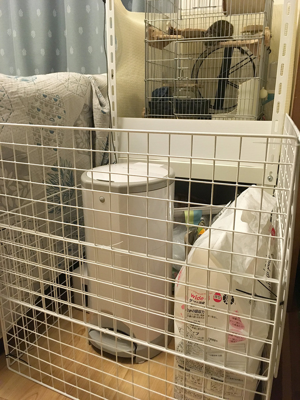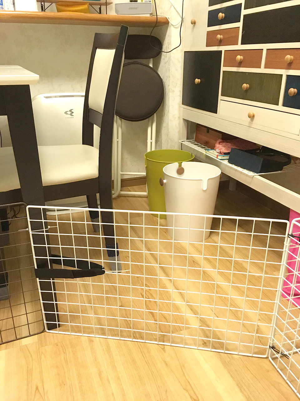 テーブルの足にも柵をつけて、下にあるコード類に手がとどかないように…